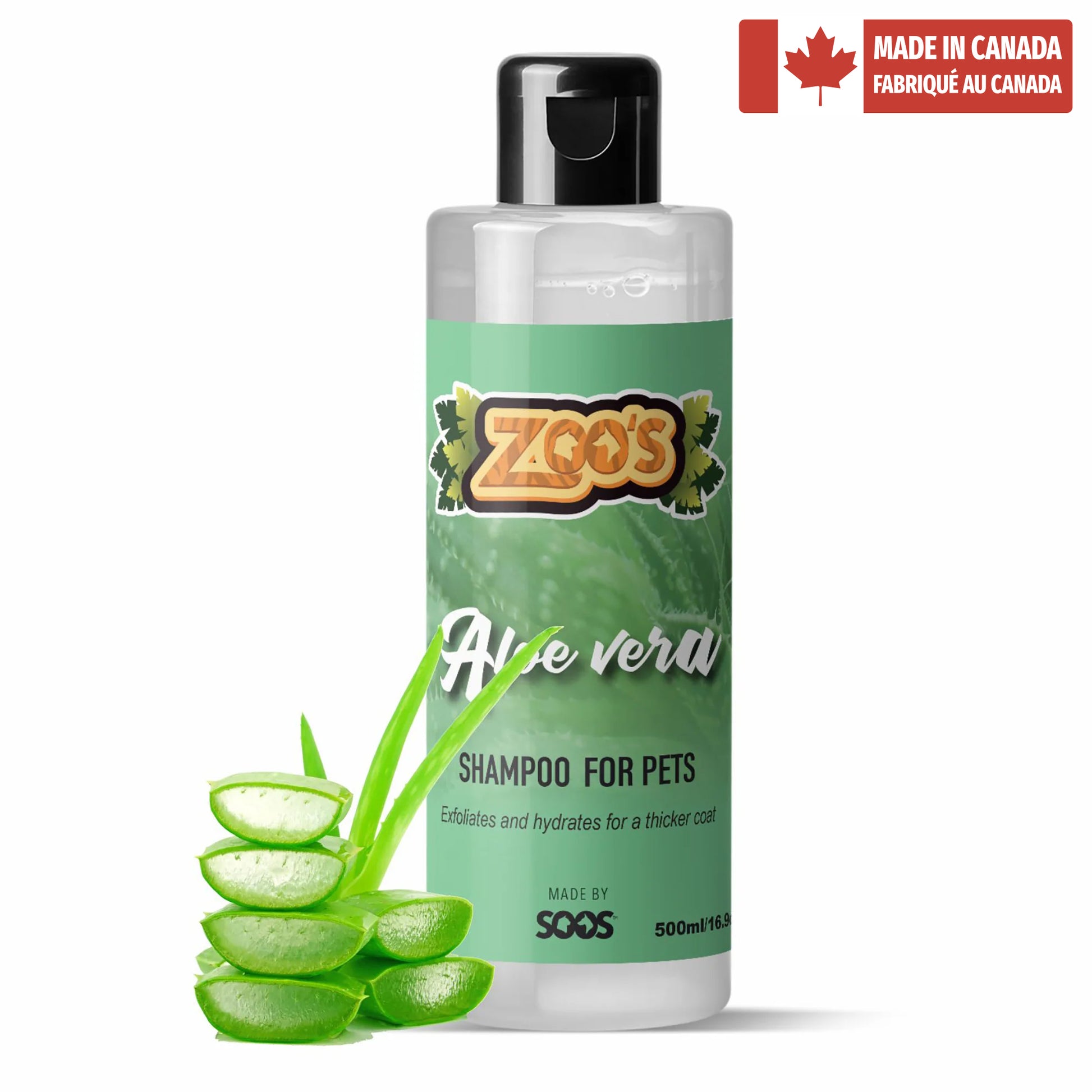 ZOO’s ALOE VERA 100% NATURAL: ZOO’S Aloe Vera Dog Shampoo for Cat and Pet is our new Economy Line of pet shampoos made by Soos Pets. Enjoy our four gentle formulas that provide affordable solutions for stronger and softer coats, calm & hyd-rated skin, fresh scent and silky feel.